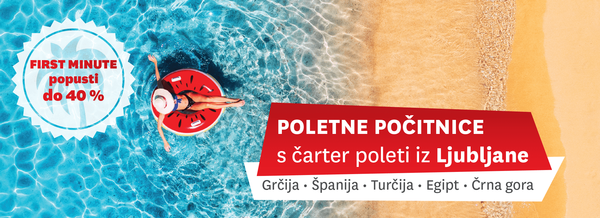 Ujemite največji FIRST MINUTE popust za dopust. Za vas smo skrbno preverili in izbrali hotele, apartmaje in družinske penzione na najlepših destinacijah Mediterana, Egipta in Jadrana. Zagotovite si svoj poletni oddih, ko so cene počitnic najnižje in je izbire največ. Za vsak stil preživljanja počitnic, za vsako generacijo in vsak žep imamo pod Palmo pravo ponudbo.